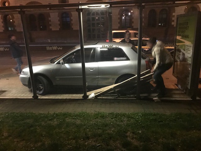 Wegen nicht angepasster Geschwindigkeit ist in der Burgstraße am Samstag ein 23-Jähriger mit seinem Auto von der Straße abgekommen. Der Fahrer verlor die Kontrolle über sein Fahrzeug, so dass sich der Pkw drehte und selbstständig in einem Bushaltestellenhäuschen „parkte“. Nur wenige Zentimeter vor der Glasscheibe des Wartehäuschens kam das Auto passgenau zum Stehen. Eine Sitzbank wurde allerdings in Mitleidenschaft gezogen. Ein Metallteil der Bank bohrte sich in einen Kotflügel des Pkw. Mit einem Trennschleifer entfernte die Feuerwehr das Metallstück. Den Unfallschaden schätzt die Polizei auf mindestens 2.500 Euro. Gegen den Fahrer leiteten die Beamten ein Ordnungswidrigkeitenverfahren ein. Der 23-Jährige muss mit einem teuren Bußgeld rechnen. |erf
