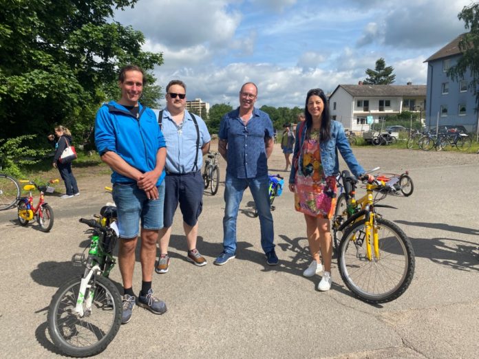 Bild: Tobias Wiesemann (BUND Kreis Kaiserslautern), Manuel Steinbach und Herbert Seel (Velo-Projekt) sowie Anja Pfeiffer (Beigeordnete)