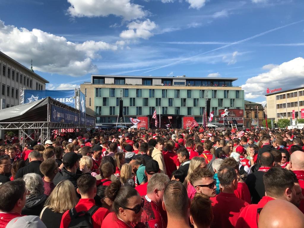 Nachdem am Vortag die Mannschaft des 1. FCK den Wiederaufstieg in die 2. Fußball-Bundesliga perfekt gemacht hatte, fand am Mittwoch, 25. Mai 2022, die Aufstiegsfeier auf dem Stiftsplatz in Kaiserslautern statt. Das Veranstaltungsgelände mit der RPR1-Bühne war schnell prall gefüllt, so dass viele Anhänger das Programm in den umliegenden Straßen verfolgen mussten. Insgesamt waren mehr als 20.000 Personen gekommen. Nach einem Empfang beim Oberbürgermeister der Stadt Kaiserslautern, Herrn Dr. Klaus Weichel, betrat die Mannschaft des 1. FCK gegen 18:30 Uhr die Bühne und ließ sich von den anwesenden Fans feiern. Im Anschluss sorgte unter anderem der aus der Region stammende Sänger Mark Forster für gute Stimmung unter den Anhängern der Roten Teufel. Von polizeilicher Seite waren vereinzeltes Abbrennen von Pyrotechnik und ein Böllerwurf auf Angehörige eines Rettungsdienstes, bei dem zwei Personen leicht verletzt wurden, zu verzeichnen.