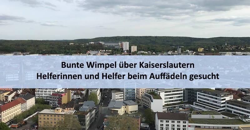 Die Wimpelaktion des Citymanagements biegt auf die Zielgerade! Tausende Wimpel wurden inzwischen gebastelt, die nun auf die dafür vorgesehene Bespannung aufgefädelt werden wollen (wohlgemerkt: Am Boden. Das Aufhängen übernehmen Fachleute!). Das Citymanagement sucht daher erneut nach fleißigen Händen, die die Aktion unterstützen möchten. Wer mitmachen möchte, meldet sich bitte wie gehabt bei Sandra Wolf: sandra.wolf@kaiserslautern.de