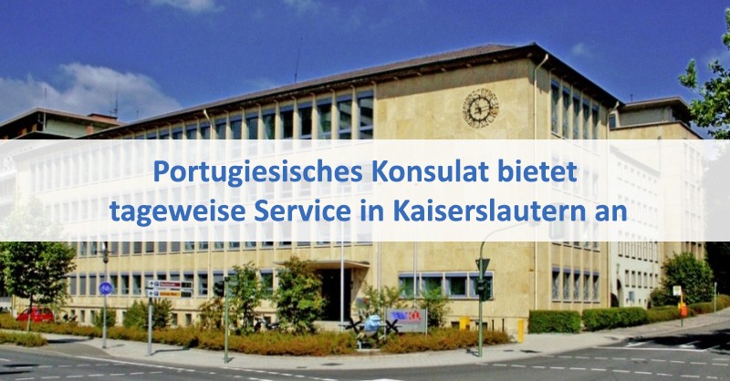 Mit großer Freude gibt das portugiesische Generalkonsulat in Stuttgart die Realisierung einer konsularischen Präsenz in der Stadt Kaiserslautern bekannt. Der Service wird vom Technischen Assistenten João Paulo Ferreira vom portugiesischen Konsulat in Hattersheim am Main durchgeführt.
