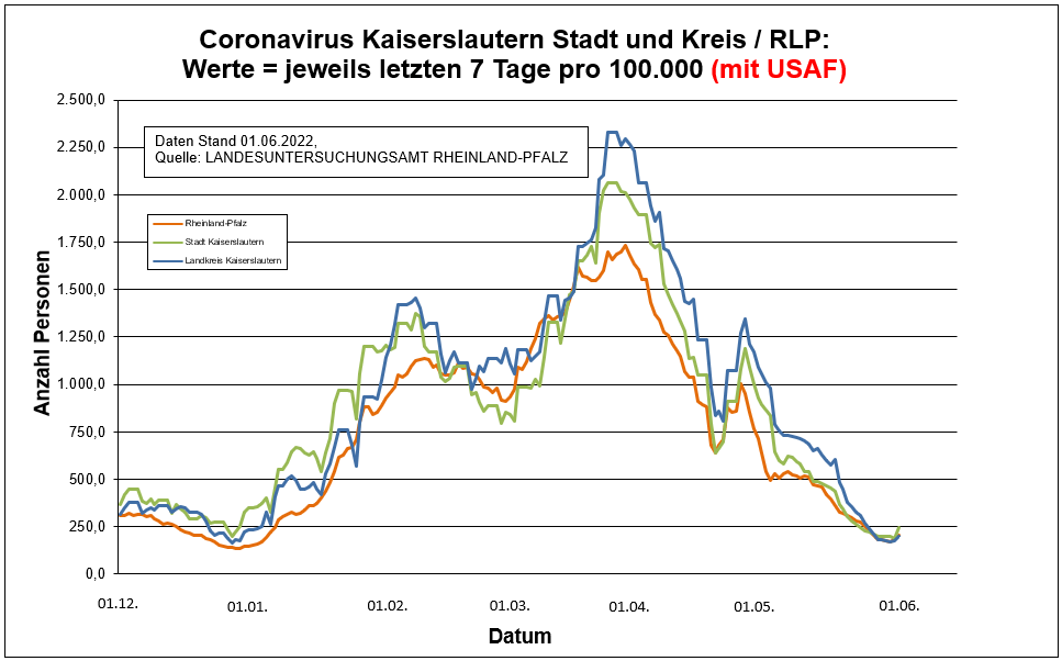 Coronavirus SARS-CoV-2: Fallzahlen für Rheinland-Pfalz, (Datenstand vom 01.06.2022, 14:10 Uhr)
