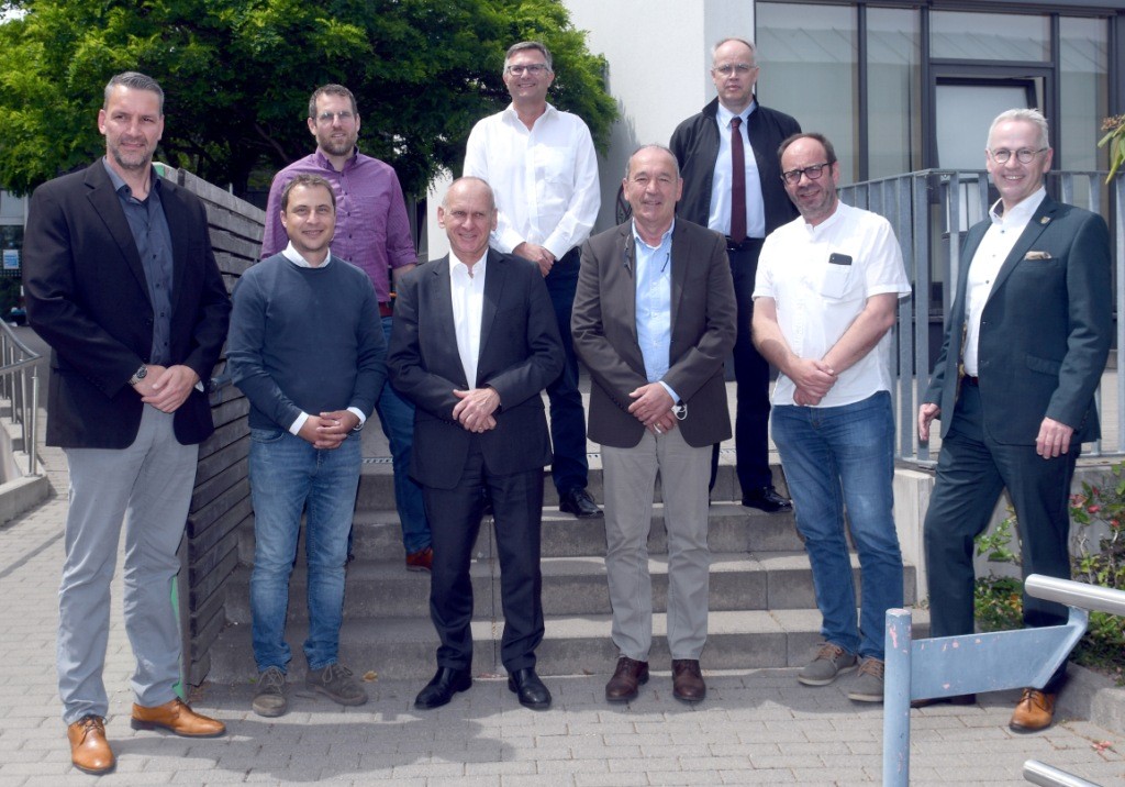 Bu: Manuel Matzath (Regionaldirektor Donnersberg WKK), Dipl. Ing. (FH) Dominique Gruhn (Geschäftsführer PAV Ingenieure), Dipl.-Ing (TU) Andreas Meyer (Geschäftsführer EPH Ingenieure), Prof. Dipl.-Ing. Linus Hofrichter (Geschäftsführer a|sh sander.hofrichter architekten), Dipl.-Ing. Rainer Wildanger (Geschäftsführer WZ-Ingeniure), Peter Förster (Geschäftsführer WKK) und Michael Ecke (Referatsleiter Technik WKK), Rolf Crolly (Referatsleiter Bau WKK), Rainer Guth (Landrat Donnersbergkreis und Stv. Aufsichtsratsvorsitzender WKK)