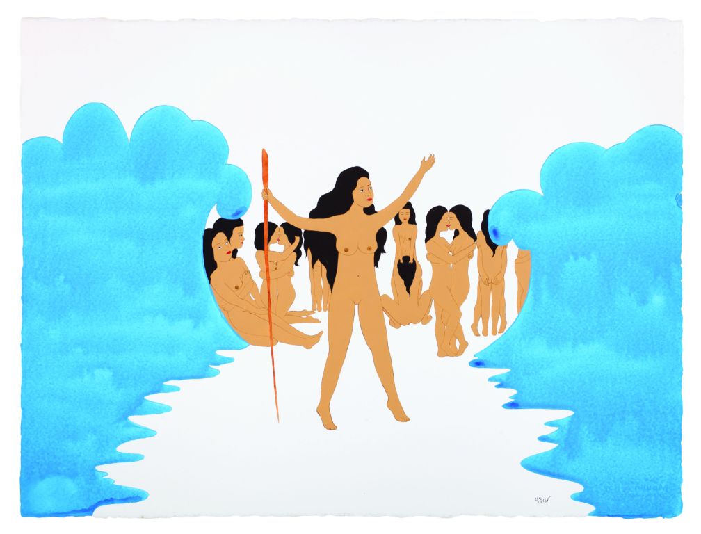 Eine Frau teilt das Meer: Kubra Khademis Gouache auf Papier „Untitled #21“ aus der Serie „Ordinary Women“ von 2020
