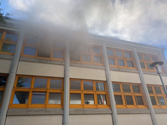 Während den umgehend vorgenommen Maßnahmen zur Brandbekämpfung wurden die einzelnen Klassenräume auf Personen kontrolliert. Im weiteren Einsatzverlauf musste das Schulgebäude aufwendig entraucht werden, da sich der Brandrauch rasch über die gesamte Etage und das Dachgeschoss ausbreitete.
