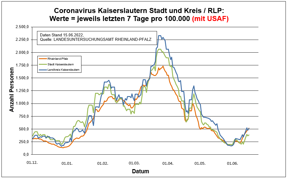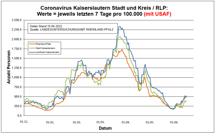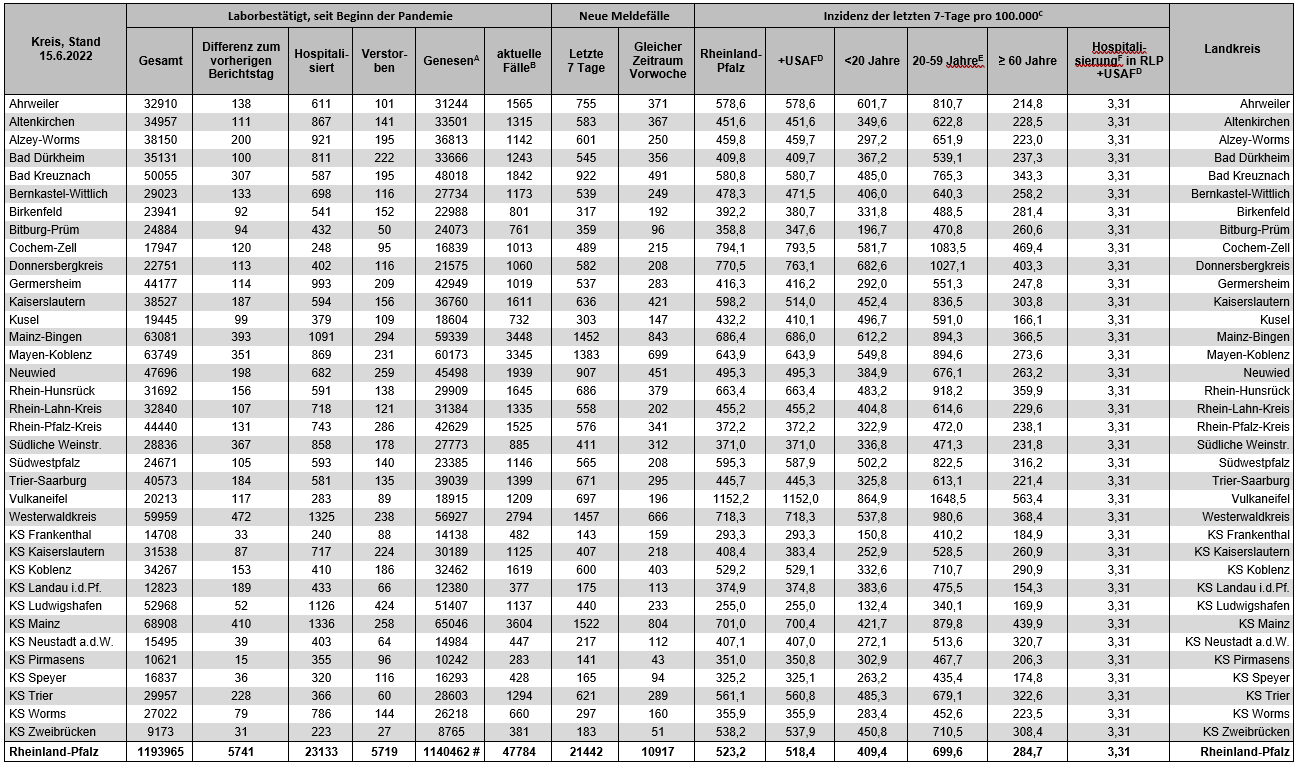 Coronavirus SARS-CoV-2: Fallzahlen für Rheinland-Pfalz, (Datenstand vom 15.06.2022, 14:10 Uhr)