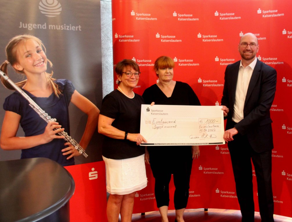 Foto v.li.: Kristina Schier, Leiterin Kreismusikschule Kaiserslautern, Jutta Weinig, Vertreterin Förderverein der Kreismusikschule, Hartmut Rohden, stellv. Vorstandsvorsitzender Sparkasse Kaiserslautern.