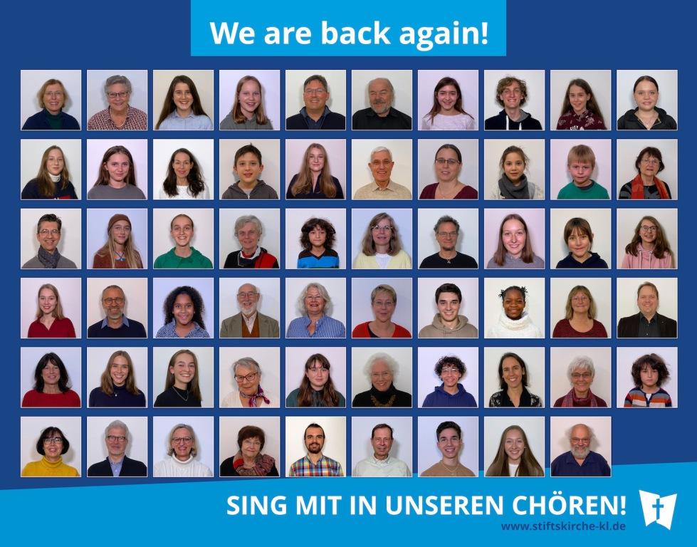 Nach über 2 Jahren Pandemie starten die Chöre an der Stiftskirche mit der Aktion „We are back again!“ neu durch. Hier kann jeder und jede den passenden Chor finden: vom Kinderchor bis zur Seniorenkantorei, von Pop bis Klassik von sakral bis unterhaltsam reicht das Spektrum an der Stiftskirche. Trotz anfangs schwieriger Probenbedingungen konnten zahlreiche Chorkonzerte im ersten Halbjahr erfolgreich aufgeführt werden. Von einem furiosen Kindermusical über ein Benefizkonzert bis hin zu einem schwungvollen Konzert der Jugendkantorei unter dem Titel „Unsre kleine Nachtmusik“ und der Marktmusik „Geh aus, mein Herz, und suche Freud“, hat das Kaiserslauterer Publikum alle Veranstaltungen zahlreich und begeistert wahrgenommen. Der Höhepunkt in der zweiten Jahreshälfte wird die Aufführung von Bachs „Weihnachtsoratorium I-III“ am 11. Dezember sein.