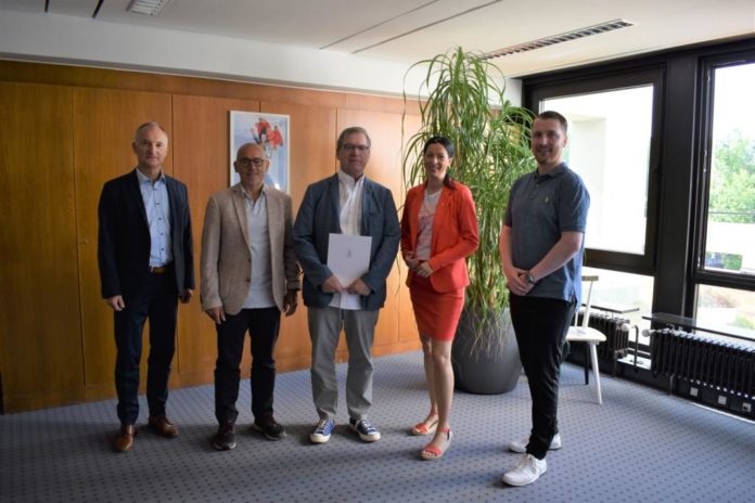 Bild: v.l.n.r.: Wolfgang Mayer (Personalreferatsleiter), Ludwig Steiner (Referatsleiter für Jugend und Sport), Richard Müller (angehender Rentner), Beigeordnete Anja Pfeiffer sowie Eric Burkhardt (Personalrat).