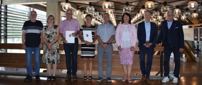 Das Foto zeigt die Jubilare mit ihren Ehepartnern sowie Peter Schmitt (links), OB Klaus Weichel (rechts), Elke Franzreb (3.v.r.) und Wolfgang Mayer (2.v.r.).