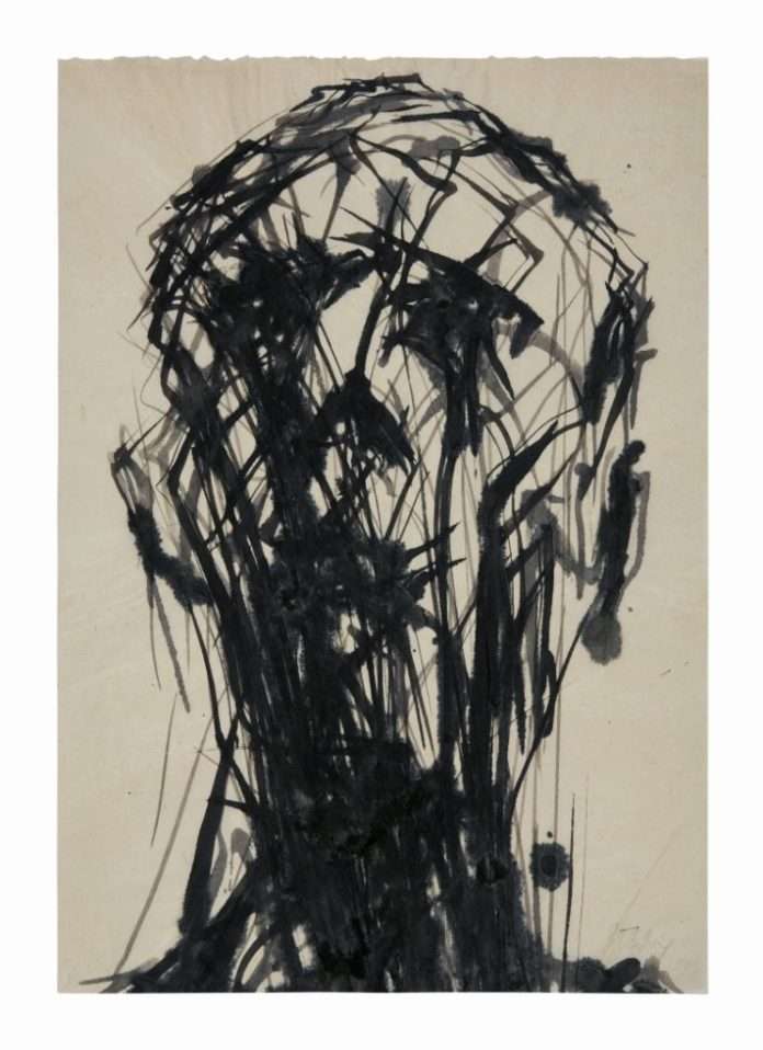 Beispiel von Max Uhligs Zeichenkunst: Arbeit ohne Titel von 1993, Tusche (Pinsel), Japanpapier
