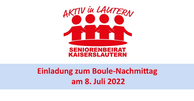 Unter dem Motto „Wer Lust hat, spielt mit!“ lädt der Seniorenbeirat zu einem Boule-Nachmittag ein, der am Freitag, dem 8. Juli ab 16.00 Uhr auf dem Bouleplatz im Stadtpark (an der Seite zur Trippstadter Straße) stattfindet. Auch Anfänger werden ihre Freude haben. Denn für Tipps und Tricks konnte Herbert Maringer gewonnen werden, der bereits vor mehr als 40 Jahren das Boule-Spiel kennengelernt hat und ambitionierter Leistungsspieler gewesen war. Im Vordergrund stehen der Gemeinschaftsgedanke und die Kommunikation vor, während und nach dem Spiel. Boulekugeln stehen außerdem für die kostenlosen und ungezwungenen Aktivitäten zur Verfügung. Eine Anmeldung ist nicht nötig, nähere Auskünfte gerne per E-Mail über seniorenbeirat@kaiserslautern.de