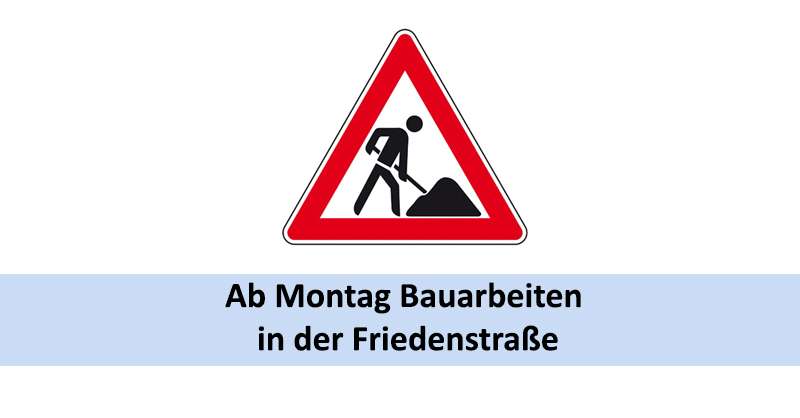Ab Montag, 4. Juli, wird in der Friedenstraße die Fahrbahndecke erneuert. Die Arbeiten erstrecken sich zunächst auf den Bereich von Hausnr. 103 bis zur Ecke Gärtnereistraße. Von 12. bis voraussichtlich 21. Juli ist dann der Bereich Ecke Nordbahnstraße bis Ecke Tirolfstraße an der Reihe. Die Arbeiten erfolgen unter Vollsperrung, Umleitungen werden ausgeschildert. Die Zufahrt zum Netto-Markt (Kunden- und Lieferverkehr) ist während der gesamten Bauzeit gewährleistet.