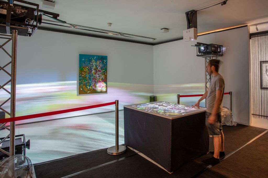 Und die Studierenden aus der Pfalz haben in der letzten Woche viel Arbeit hineingesteckt, den Prototypen einer Installation, den sie bisher nur in kleiner Runde an der Hochschule präsentiert hatten, aufzubauen und weiten Zuschauerkreisen zugänglich zu machen. Diese sollen damit erfahren, was ein Künstler spürt, wenn er malt. Für Löwentraut fühlt sich Malen wie Fliegen an. In Salzburg können die Besucher dieses Gefühl analog wie auch digital erleben. Immersiv. Interaktiv.