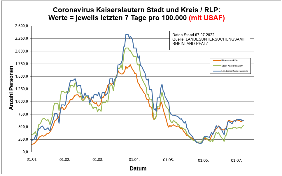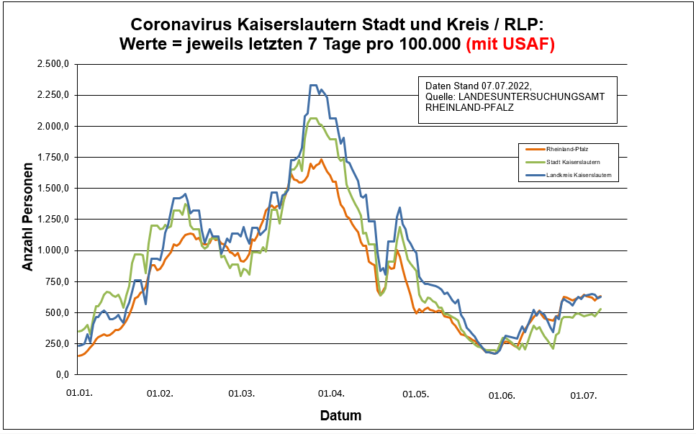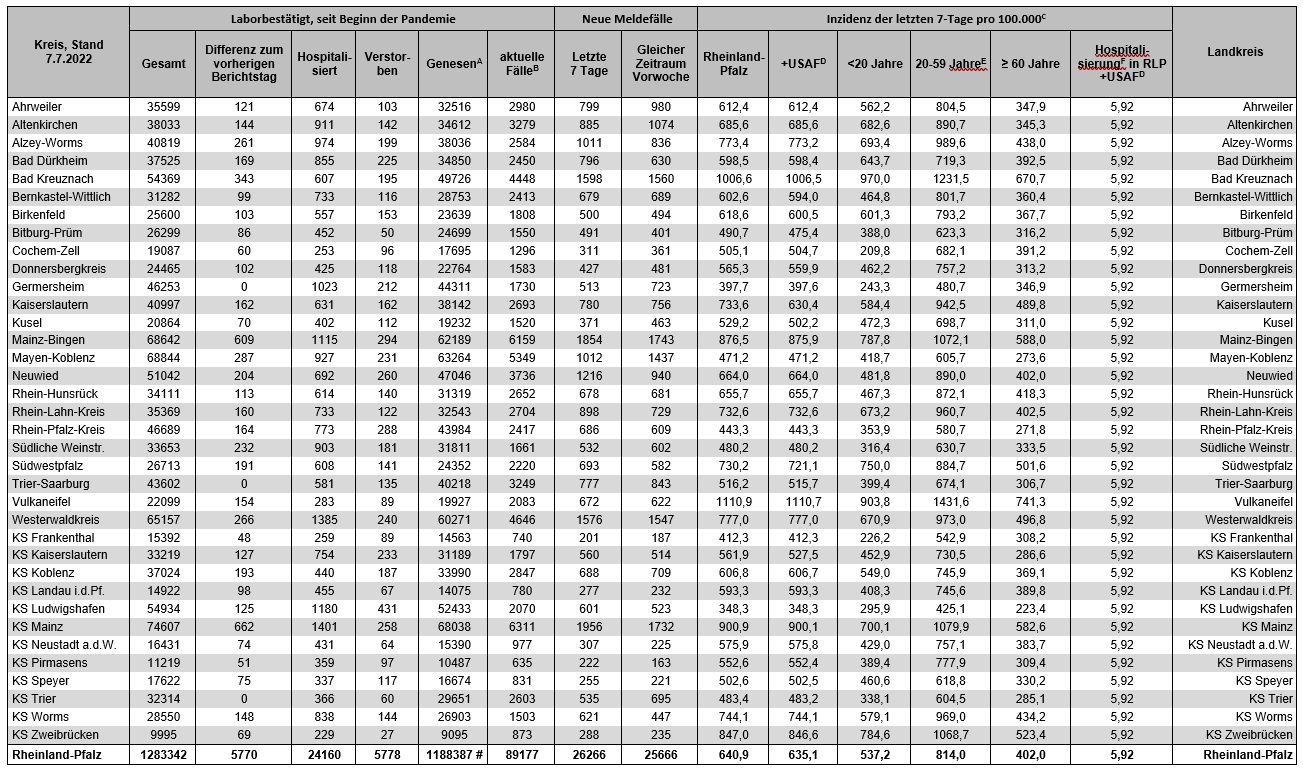 Coronavirus SARS-CoV-2: Fallzahlen für Rheinland-Pfalz, (Datenstand vom 07.07.2022, 14:10 Uhr)