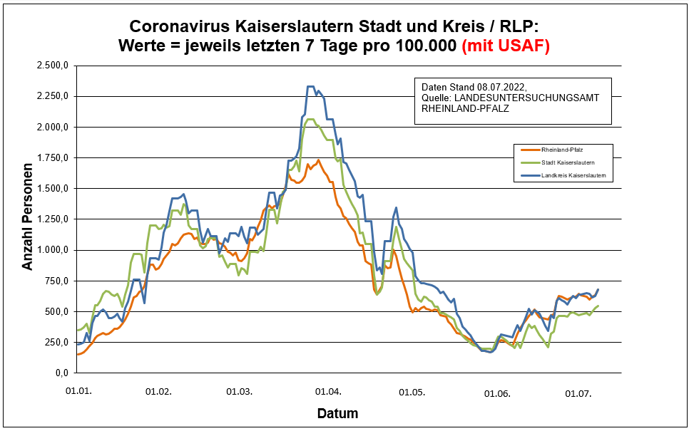 Coronavirus SARS-CoV-2: Fallzahlen für Rheinland-Pfalz, (Datenstand vom 08.07.2022, 14:10 Uhr)