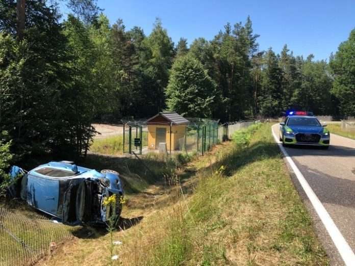 Ein 50-jähriger Mann aus dem Kreis Kaiserslautern befuhr die K 25 aus Richtung Rodenbach in Richtung Kaiserslautern OT Einsiedlerhof. Kurz nach einer Linkskurve verlor er vermutlich aufgrund nicht angepasster Geschwindigkeit die Kontrolle über seinen PKW und kam nach rechts von der Fahrbahn ab. Der PKW überschlug sich und kollidiert mit einem dort befindlichen Zaun, auf welchem er mit der Fahrzeugseite zum liegen kam. Der Fahrzeugführer konnte sich selbst aus dem PKW befreien und war glücklicherweise nur leicht verletzt. Während der Verkehrsunfallaufnahme wurde bei dem Mann eine Alkoholisierung von 1,73 Promille festgestellt. Ihm wurde in der Folge eine Blutprobe entnommen und der Führerschein sichergestellt. |PvD