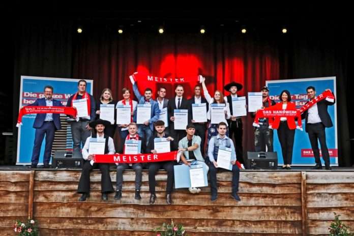 Die Prüfungsbesten der jeweiligen Gewerke erhielten Urkunden und Geschenke für ihre hervorragenden Leistungen. Der aus Fernsehen und Internet bekannte Moderator Mirko Drotschmann und die Band „Brass2Go“ sorgten für gute Stimmung während der Meisterfeier.