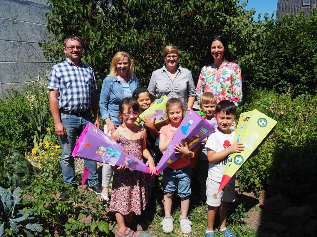 Das Kreativlabor des Ökologieprogramms hat für die angehenden Schulkinder verschiedener Kaiserslauterer Kitas Schultüten gebastelt. Bei der offiziellen Übergabe heute durch die Beigeordnete Anja Pfeiffer in der Kita Mobile wurden fünf der insgesamt 40 Tüten mit Begeisterung in Empfang genommen. Pfeiffer bedankte sich beim Ökologieprogramm für den tollen Einsatz: „Ihr Engagement kommt genau da an, wo es gebraucht wird, um den Kindern einen schönen Start in die Schule zu ermöglichen!“