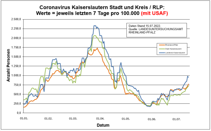 Coronavirus SARS-CoV-2: Fallzahlen für Rheinland-Pfalz, (Datenstand vom 15.07.2022, 14:10 Uhr)