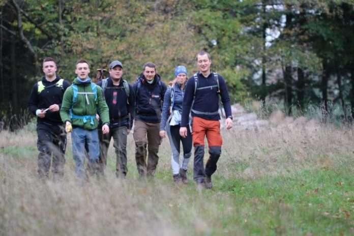 Mit Spaß und Schwung durch den Pfälzerwald: Teilnehmende beim Wandermarathon im Biosphärenreservat Pfälzerwald (Foto: Elke Dilzer/frei zur Verwendung durch Presse)