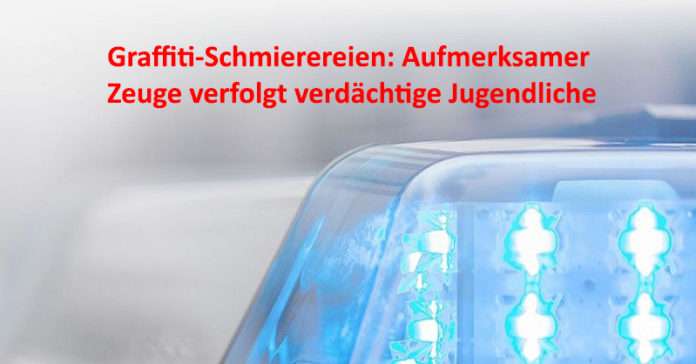 Die Polizei ermittelt gegen zwei Jugendliche aus dem Stadtgebiet, die in der Nacht zu Dienstag aufgefallen sind. Die beiden 16 und 17 Jahre alten Jungen stehen im Verdacht, für diverse Graffiti-Schmierereien verantwortlich zu sein. Gegen Mitternacht meldete ein Zeuge aus der Schneppbachstraße, dass sich zwei verdächtige Personen an abgestellten Autos zu schaffen machen. Er folgte dem Duo bis in die Augustastraße. Dort merkten die beiden Jugendlichen, dass sie einen „Verfolger“ haben, und versuchten zu flüchten. Einer der beiden konnte entkommen, den anderen konnte der Zeuge festhalten und zu Boden bringen. Die ausgerückte Streife stellte in den Beuteln, die der 16-Jährige bei sich hatte, mehrere Farbspraydosen fest. Außerdem hatte er einen Acrylstift in der Tasche, und sein Handy verriet, dass er kurz zuvor mit diesem Stift einen Stromverteilerkasten beschmiert hatte.