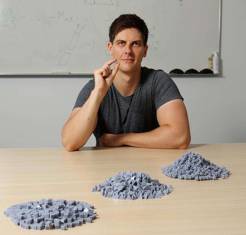 Bu: Robert Hesse zeigt die im 3D-Druckverfahren hergestellten nicht-sphärischen Partikel, mit denen er die Simulationsmodelle im Projekt validiert hat.