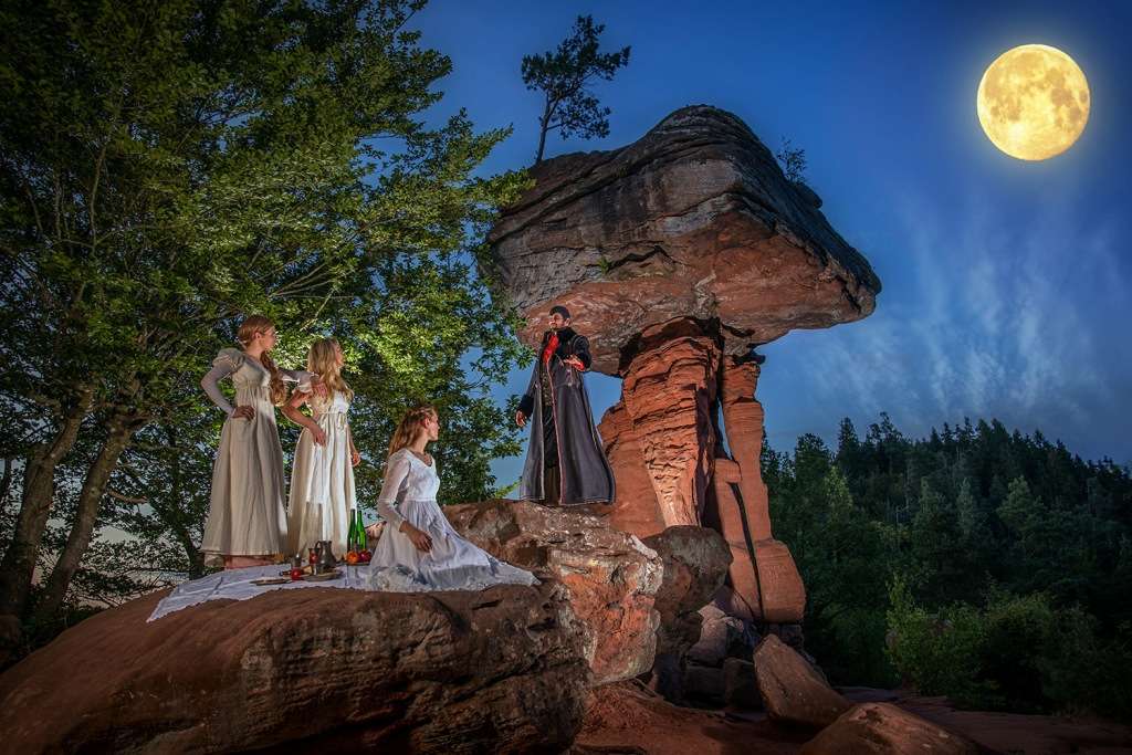Entstanden sind zwölf Motive zu bekannten Sagen oder historischen Besonderheiten, die mit der Westpfalz in Verbindung stehen. Fotograf Harald Kröher lichtete die jeweilige Szenerie mithilfe von professionellen Models und aufwendigen Requisiten – sogar ein Pferd wurde gemietet – an den einzelnen Standorten ab. Bei der Herausforderung, die passende Garderobe für die meist im Mittelalter oder in der