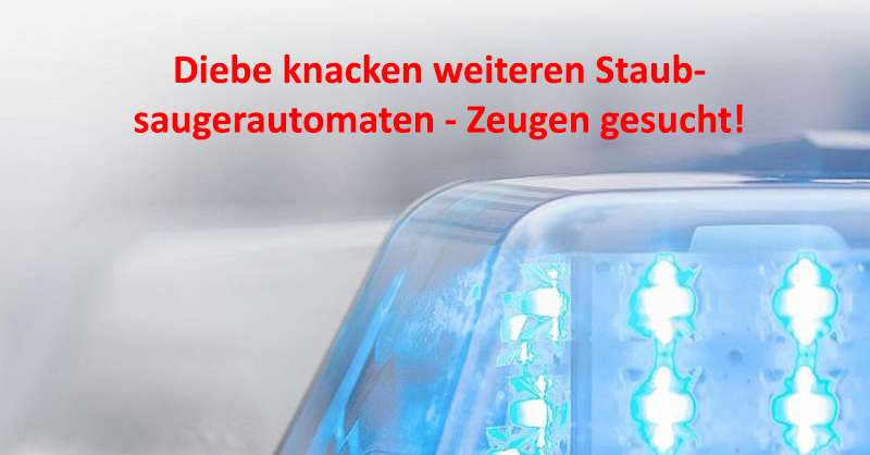 Diebe haben in der Nacht zum Dienstag einen weiteren Staubsaugerautomaten aufgebrochen. In der Brandenburger Straße suchten sie eine Tankstelle auf. Sie knackten das Schloss des Automaten und stahlen Münzgeld. In der gleichen Nacht machten sich Unbekannte an einem Gerät einer Waschstation in der Straße Am Rangierbahnhof zu schaffen (wir berichteten: https://s.rlp.de/06trt). Ein Tatzusammenhang ist nicht auszuschließen. Die Ermittlungen dauern an. Zeugen, die Hinweise geben können oder Verdächtiges wahrgenommen haben, werden gebeten, sich unter der Telefonnummer 0631 369 2250 mit der Polizei Kaiserslautern in Verbindung zu setzen. |erf