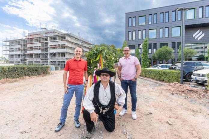 Diese werden voraussichtlich in der ersten Jahreshälfte 2023 das Erdgeschoss beziehen. In den oberen Geschossen werden 21 Mietwohnungen errichtet. Zur Feier kamen Mitarbeiterinnen und Mitarbeiter, Vorstandsvorsitzender Carsten Rutz sowie Unternehmensgründer Daniel Arnold, der nun dem Aufsichtsrat vorsitzt, zusammen. Zimmermann Daniel Wewior und Bauleiter Dennis Weber hielten den Richtspruch ab. Die vom Dach geworfenen Gläser zersprangen. Dementsprechend steht dem gesamten Projekt das Glück gesichert zur Seite. Carsten Rutz: „Nach 22 Jahren sind wir an der Stätte unserer Unternehmensgründung weiterhin ein erfolgreicher Arbeitgeber mit Wachstumsaussicht. Das macht uns stolz. Wir sind stets auf der Suche nach begabten Kolleginnen und Kollegen, mit denen wir von Kaiserslautern aus Projekte in der Region und teils auch bundesweit steuern.“
