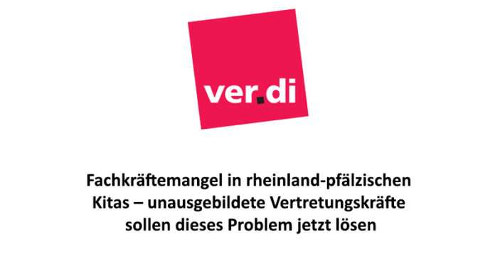 Bis Ende 2028 soll mit unausgebildeten Vertretungskräften dem Problem des Fachkräftemangels in rheinland-pfälzischen Kitas entgegengewirkt werden. Dies besagt eine Änderung der Ausführungsverordnung des Kita-Gesetzes in Rheinland-Pfalz. Bisher durften unausgebildete Vertretungskräfte für höchstens sechs Monate in Kitas beschäftigt werden. Diese Regelung wurde nun außer Kraft gesetzt. Die Vereinte Dienstleistungsgewerkschaft (ver.di) sieht darin massive Qualitätsverluste in der pädagogischen Arbeit. Darüber hinaus ist das damit vermittelte Signal an die Erzieherinnen und Erzieher in Zeiten eines eklatanten Fachkräftemangels fatal.