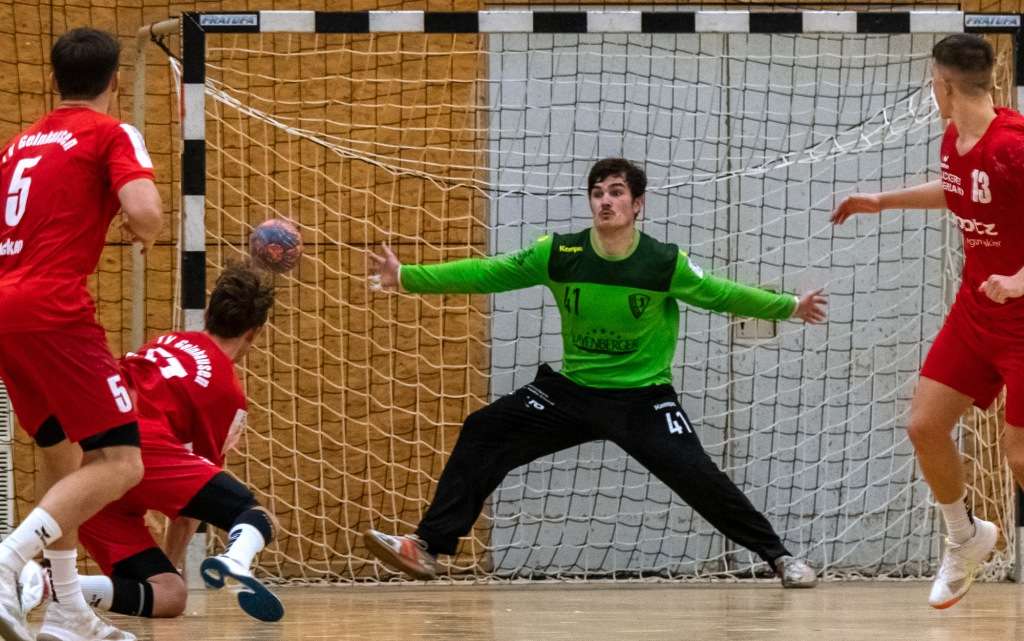 Bildtext: Mit insgesamt 12 Paraden hielt er den TuS lange im Spiel: Torhüter Frederick Lüpke.