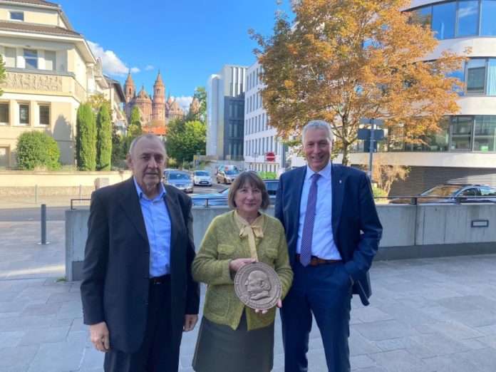 Auf Vorschlag von Oberbürgermeister Klaus Weichel wurde Gabriele Wollenweber in Worms von Innenminister Roger Lewentz mit der Freiherr-vom-Stein-Plakette geehrt. Die studierte Physik- und Mathematiklehrerin ist seit 1994 Mitglied im Stadtrat für die Fraktion der Freien Wähler. Über 20 Jahre – so auch aktuell heute – hat sie darüber hinaus den Fraktionsvorsitz inne. Sie ist ferner seit 2003 Beisitzerin im FWG-Bezirkstag, seit 2012 Beisitzerin im FWG-Landesverband und seit 2017 stellvertretende Vorsitzende des FWG-Bezirkstags. Zur Auszeichnung wurde sie von ihrem Mann sowie vom städtischen Beigeordneten Peter Kiefer begleitet.