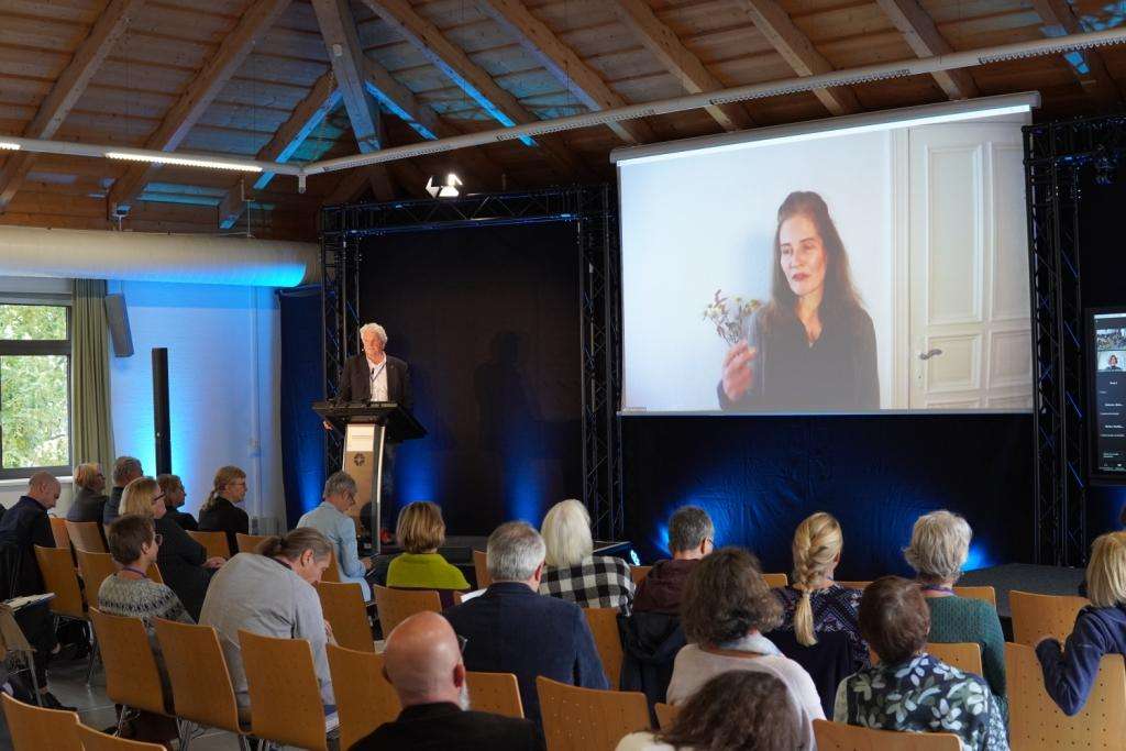 Mit großem Erfolg ist die dreitägige Bundeskonferenz der mittelstädtischen und regionalen Volkshochschulen zu Ende gegangen. Insgesamt 120 Teilnehmer*innen, 70 in Präsenz, 50 online, haben sich ausgetauscht rund um das Thema „In unsicheren Zeiten Zukunft erschaffen“. Den Eröffnungsvortrag hielt die Berliner Philosophin Natalie Knapp (siehe Bild). Mit dem Titel „Warum Zeichen der Unsicherheit so wertvoll sind“ eröffnete sie den VHS Leitern*innen aus der ganzen Republik und aus Österreich und der Schweiz neue Zukunftsperspektiven.