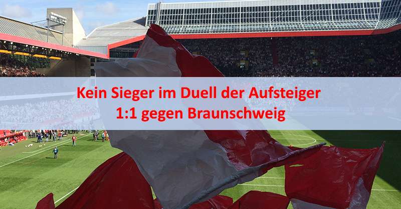 Das sollte sich kurz nach dem Seitenwechsel dann ändern. Nach einem Freistoß im Mittelfeld bediente Robin Krauße mit einem Steckpass Lion Lauberbach, der den Ball kurz annahm und dann flach mit links in die rechte Ecke traf. Die Roten Teufel zeigten sich davon aber unbeeindruckt und schlugen direkt zurück. Wurde eine Doppelchance von Hendrick Zuck und Kevin Kraus noch zur Ecke geklärt, klingelte es dann nach dieser im Braunschweiger Kasten. Philipp Klement servierte von links, Boris Tomiak stand im Zentrum goldrichtig und traf per Kopfballaufsetzer zum postwendenden 1:1. Die Roten Teufel waren nun am Drücker und setzten die Gäste wiederholt immens unter Druck, beispielsweise als Terrence Boyd nach einer guten Stunde alleine vor dem Tor auftauchte, Jasmin Fejzic aber nicht überwinden konnte. 20 Minuten vor dem Ende stand dann wieder eine Entscheidung von Schiedsrichter Robert Schröder im Mittelpunkt, der Philipp Klement zunächst die Rote Karte gezeigt hatte, diese nach Studium der TV-Bilder aber wieder zurücknahm. Auf jeden Fall war weiter Feuer drin in der Partie auf dem Betze und keins der beiden Teams wollte sich mit der Punkteteilung zufrieden geben. Angetrieben von den 36.000 Zuschauern im Fritz-Walter-Stadion nisteten sich die Roten Teufel in den letzten zehn Minuten phasenweise in der gegnerischen Hälfte ein, aber auch die Gäste sorgten nach schnellen Vorwärtsbewegungen immer wieder für Gefahr. Trotz aller Bemühungen beider Teams gab es am Ende aber keinen Sieger – auch, weil Jasmin Fejzic tief in der Nachspielzeit nochmal bärenstark gegen Lex Tyger Lobinger parierte.