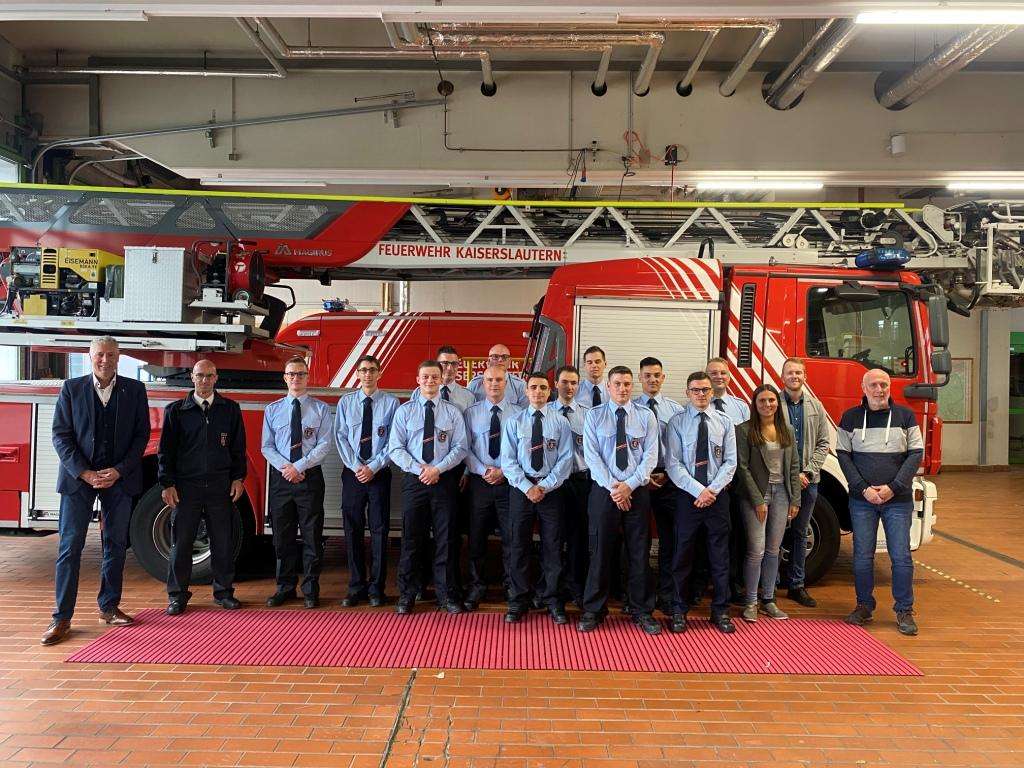 Freudig und stolz präsentierten sich bei der offiziellen beamtenrechtlichen Ernennung die neuen Mitglieder der Berufsfeuerwehr: Dennis Reiß wurde zum Brandoberinspektoranwärter auf Widerruf ernannt. Nuno Loureiro, Tim Müller, Tobias Rech, Kerim Soula, Felix Fabian Strauß, Pascal Bäcker Sven Bischoff, Markus Reichert, Raphael Tobias Staudt, Christoph Braun, Marcel Fauß und Jakob Frisch erhielten ihre Ernennungsurkunden als Brandmeister auf Probe.