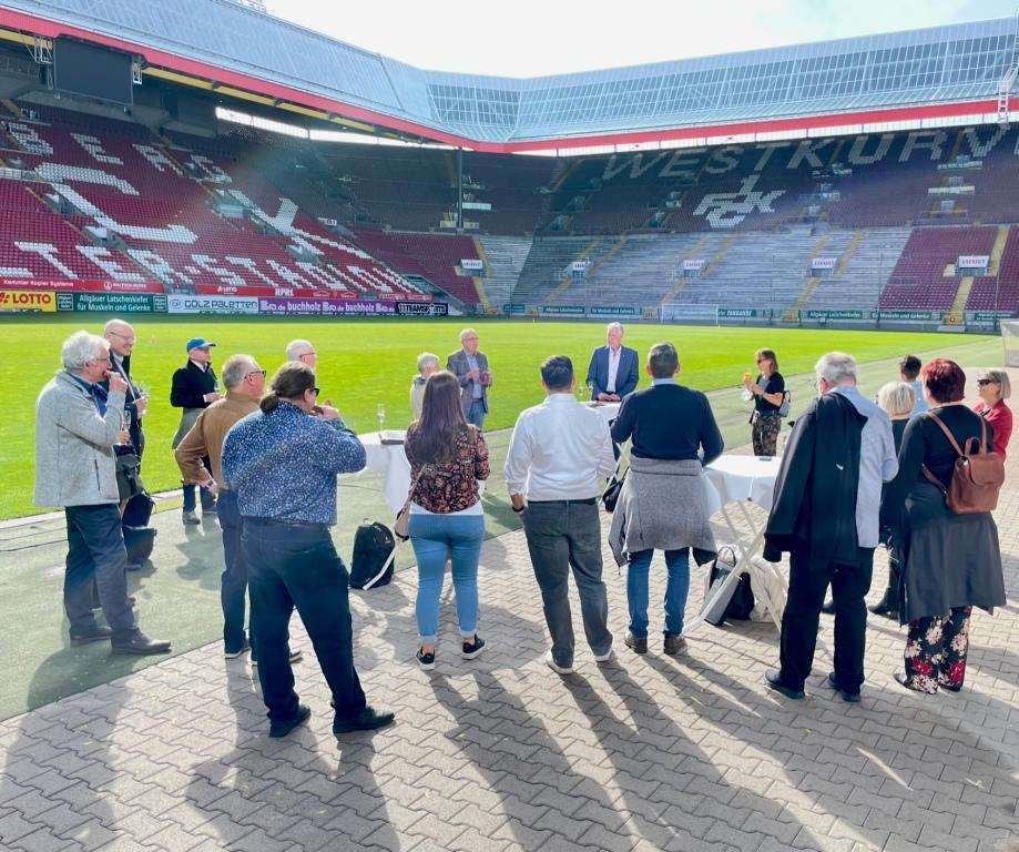 Bild: Peter Kiefer (Bildmitte rechts), Vorsitzender der Prüfungsausschusses Pfalz, begrüßte die Gäste zur Jahresabschlussversammlung im Fritz-Walter-Stadion.