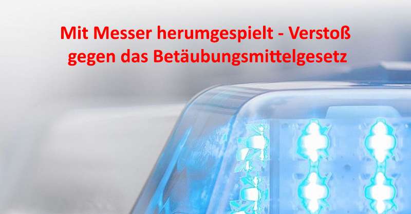 Eine aufmerksame Zeugin hat der Polizei am Montagnachmittag gemeldet, dass sich im Stadtpark ein Mann aufhält, der mit einem Messer herumspielt. Nach Angaben der Frau machte der Unbekannte den Eindruck, dass er unter Drogeneinfluss steht. Eine Streife rückte sofort aus und konnte den beschriebenen Mann vor Ort gleich ausfindig machen. Weil er sich den Beamten gegenüber aggressiv verhielt, wurde er vorsorglich gefesselt. In der Jackentasche des 19-Jährigen fanden die Polizisten ein Taschenmesser und auf dem Boden entdeckten sie einen Joint. Zur Verhinderung von Straftaten wurde der junge Mann nach Hause gebracht und erhielt einen Platzverweis für den Stadtpark. Darüber hinaus wird gegen den 19-Jährigen wegen des Verdachts eines Verstoßes gegen das Betäubungsmittelgesetz ermittelt. |cri
