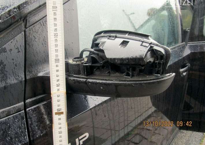 Die Nutzerin des Fahrzeugs entdeckte am Vormittag die ärgerliche Überraschung: Der Außenspiegel auf der Fahrerseite war stark beschädigt und der vordere Kotflügel verschmutzt. Vom Verursacher fehlt jede Spur.