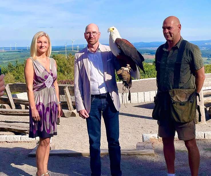 Der Aufwand zur Erhaltung des Wildparks sei enorm, so Schauß. Seit vielen Jahren erhält der Wildpark Potzberg Zuwendungen von der Kaiserslauterer Sparkasse. Von großer Bedeutung sei die auf Nachhaltigkeit zielende Aufklärungsarbeit des Wildparks, lobte Hartmut Rohden, stellvertretender Vorstandsvorsitzender der Sparkasse Kaiserslautern. Mit ihrer allgemeinen Aufgabenerfüllung dienen die Sparkassen dem Gemeinwohl, hob Rohden den gesellschaftlichen Auftrag der Sparkasse hervor. Neben Einrichtungen und Vereinen in den Bereichen Sport, Kultur, Wissenschaft, Bildung und Soziales werden in der Region auch engagierte Natur- und Tierschützer durch die Sparkasse gefördert, ergänzte Andrea Brunnett, Marketingleiterin der Sparkasse Kaiserslautern. Im Greifvogelzoo Potzberg unterhält die Sparkasse seit vielen Jahren eine Patenschaft für den Seeadler „Ulli“.