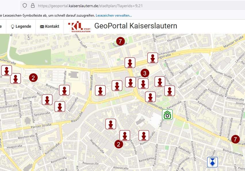 Vielen Bürgerinnen und Bürgern ist diese Vielzahl gar nicht bewusst, einzelne Skulpturen wie etwa der „Brezeladam“ an der Kreuzung Marktstraße-Eisenbahnstraße oder die neue Skulptur „Die Aufragende“ vor dem Museum Pfalzgalerie haben sich aber eingeprägt . Skulpturen wie „Das Tier“ im Eselsbachtal haben auch manchmal zu Diskussionen geführt. Man begegnet zahlreichen Skulpturen auf dem Gelände der Universität und auch auf dem der Gartenschau. Skulpturen prägen das Gesicht unserer Stadt, geben etwas von ihrer Geschichte wieder, sind mit dem häufig verwendeten Sandstein ein Zeichen für unsere Region, sie sind ein Teil unserer Stadtkultur. Nun kann man die Skulpturen auch online im Geoportal der Stadt unter https://geoportal.kaiserslautern.de/skulpturen finden.