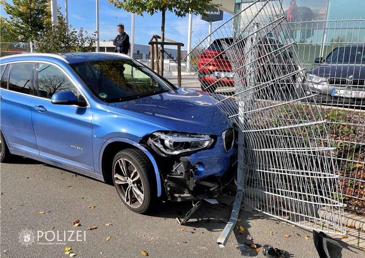 Die 40-Jährige war kurz vor 11 Uhr in einer Kurve mit ihrem BMW X1 von der Fahrbahn abgekommen und hatte ein ordnungsgemäß geparktes Auto gerammt. Anschließend verriss die Frau das Lenkrad und krachte in einen Zaun, der das Gelände einer Autofirma umgibt. Die Unfallfahrerin und ihr Beifahrer blieben unverletzt. Der BMW wurde jedoch so stark beschädigt, dass er nicht mehr fahrbereit war und abgeschleppt werden musste. – Gesamtschaden: rund 18.000 Euro.