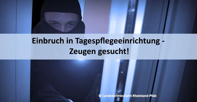 Unbekannte drangen am Wochenende in die Räumlichkeiten einer Tagespflegeeinrichtung im Pfeifertälchen ein. Die Täter verschafften sich zwischen Freitag, 18 Uhr und Montag, 5 Uhr, über die Hintertür Zugang in das Gebäude. Sie durchwühlten das Büro und entwendeten Bargeld aus einer Geldkassette. Hinweise auf die Täter liegen nicht vor. Sie entkamen unerkannt. Es entstand Sachschaden in unbekannter Höhe. Die Polizei sicherte Spuren und sucht Zeugen, die in der fraglichen Zeit etwas Verdächtiges beobachtet haben oder Hinweise auf die Täter geben können. Unter der Rufnummer 0631 369-2620 können sich Zeugen bei der Kriminalpolizei melden. |elz