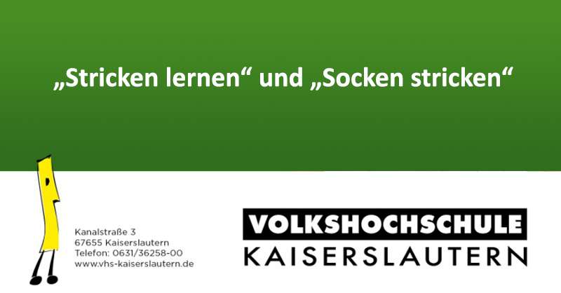 Die Volkshochschule Kaiserslautern bietet ab Samstag, dem 12.11.2022 für Diejenigen, die sich gerne noch vor Weihnachten kreativ beschäftigen möchten, einen Kurs „Stricken lernen“ sowie den Kurs „Socken stricken“ an. Unter Leitung der VHS-Dozentin Julia Alexandra Maria Deubel werden jeweils an 6 Vormittagen das Stricken erlernt und im nächsten Kurs das Socken stricken vermittelt.