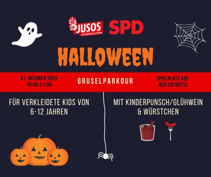 Gemeinsam mit dem SPD-Ortsverein Erzhütten/Wiesentalerhof und der SPD Kaiserslautern freuen wir uns auf furchtbar kostümierte Kinder. Für das leibliche Wohl ist mit Glühwein, Kinderpunsch und Würstchen ebenfalls gesorgt.