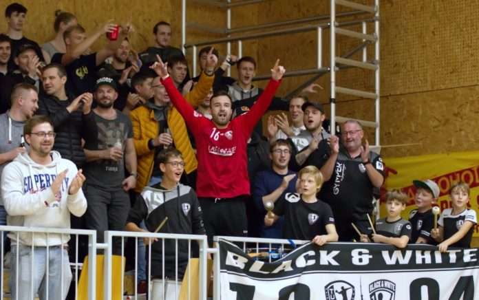 Auch nach dem Seitenwechsel gelang es den Schwarz-Weißen nicht, die Gäste abzuschütteln. Der TuS versuchte sein Glück nun mehr und mehr über das Zusammenspiel mit Kreisläufer Sebastian Bösing, der sich geschickt Freiraum verschaffte und oft nur mit unfairen Mitteln zu bremsen war. Die Folge: Strafwürfe für den TuS. Fabian Serwinski zeigte sich in dieser Disziplin makellos, packte sein komplettes Wurfrepertoire aus und verwandelte mit 100%iger Quote sechs Mal von der Siebenmeterlinie. Die Gäste aber blieben hartnäckig und lebten insbesondere von der Treffgenauigkeit Simon Schleidweilers, der bis zum 21:20 (43.) weitere vier Treffer markierte. Kurz zuvor nahm TuS-Trainer Frank Müller nochmals einen Wechsel auf der Torhüterposition vor. Frederik Lüpke, der bereits in der Schlussphase des ersten Spielabschnitts für den glücklosen Michel Fiedler kam, räumte in der 40. Minute den Platz im TuS-Tor für seinen Kollegen. Doch auch diese Maßnahme verpuffte zunächst. Bis zum 24:23 in der 48. Minute zählte die Statistik magere sechs Torhüterparaden. Das sollte sich nun aber komplett ändern. Michel Fiedler parierte zunächst einen Tempogegenstoß von Mundenheims Yannick Treiber, um dann bis zum Abpfiff nur noch einen Gegentreffer zuzulassen. Zehn Torchancen, darunter mehrere 100%ige, vereitelte der von den Junioren des SC Magdeburg gekommene 19-jährige. Dies war auch bitter nötig, denn auch die TuS-Angreifer hatten ihr Pulver mehr oder weniger verschossen und verrannten sich immer öfter in Einzelaktionen. Abspielfehler summierten sich und luden die Gäste zu einfachen Toren ein. Darüber, dass die VTV diese Einladungen nicht genutzt haben, werden sich auch die zahlreich vertretenen Mundenheimer Fans geärgert haben. Im schwarz-weißen Fanblock dagegen herrschte Hochstimmung ob der Galavorstellung des Michel Fiedler, der unter tosendem Applaus und sanftem Druck seiner Teamkollegen den Gang auf die Fantribüne antrat, um sich feiern zu lassen. Mit 29:24 gewinnt der TuS am Ende verdient und darf sich über zwei hart erarbeitete Punkte freuen.