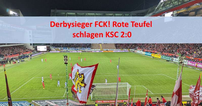 Auch nach dem Seitenwechsel blieb die Partie von Zweikämpfen geprägt und die Gäste kamen wieder mit etwas mehr Ballbesitzanteilen aus der Kabine. Die Roten Teufel verteidigten aber ebenfalls weiter mit viel Aufwand, so dass die Karlsruher Angriffsbemühungen meistens ins Leere liefen. Der gerade eingewechselte Lex Tyger Lobinger setzte nach einer Stunde bei einem Konter mal wieder ein offensives Zeichen, sein Schuss von der Strafraumgrenze ging aber neben das von Marius Gersbeck gehütete Tor. Ansonsten blieb das Bild ähnlich, der KSC hatte meist den Ball, wusste damit aber nicht viel Gefahr zu beschwören. So strich im zweiten Durchgang die Zeit von der Uhr, ehe sieben Minuten vor dem Ende der FCK die Chance auf die Vorentscheidung hatte. Nachdem Kenny Prince Redondo den Ball akrobatisch vors Tor gebracht hatte, rettete Sebastian Jung auf der Linie gegen Mike Wunderlich. Auf der Gegenseite versuchte Jerome Gondorf mit einem Distanzschuss den Ausgleich zu erzwingen, Andreas Luthe hatte den Ball aber sicher. Der KSC machte in der Schlussphase immer weiter auf und bot dem FCK so Platz zum Kontern. Und so kamen die Roten Teufel fünf Minuten vor dem Ende dann auch zur Entscheidung. Der eingewechselte Aaron Opoku machte über rechts Meter, seine Flanke fand am langen Pisten Kenny Prince Redondo, der nur noch einschieben musste. Der Betze bebte erneut – 2:0 und der Derbysieg im Sack.