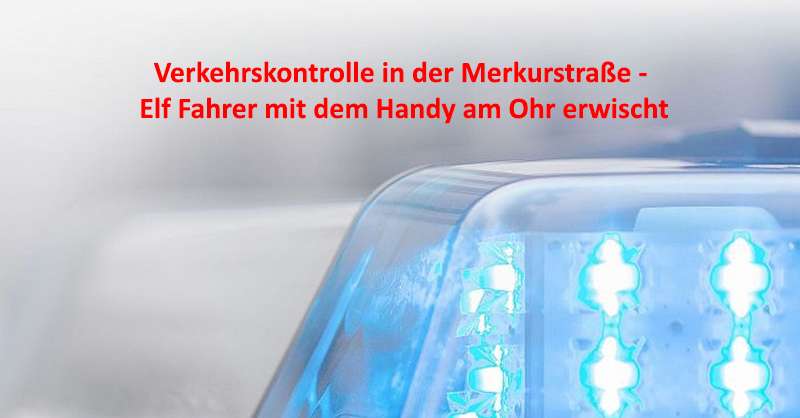 Die Polizei hat am Dienstagvormittag den Verkehr in der Merkurstraße überwacht. Innerhalb von zwei Stunden wurden insgesamt 27 Fahrzeuge unter die Lupe genommen. Dabei ergaben sich mehrere Beanstandungen. Drei Fahrer wurden kostenpflichtig verwarnt, weil sie gegen die Gurtpflicht verstießen und während der Fahrt nicht angeschnallt waren. Elf Fahrer wurden mit dem Handy am Ohr erwischt – ihnen blühen deshalb Bußgelder in Höhe von mindestens 100 Euro sowie ein Punkt in der „Verkehrssünderdatei“. Fünf Fahrer erhielten einen sogenannten Mängelbericht, da sie mit defekten Lichtanlagen unterwegs waren. Sie müssen nun die kaputten Leuchten schnellstmöglich reparieren lassen. |elz