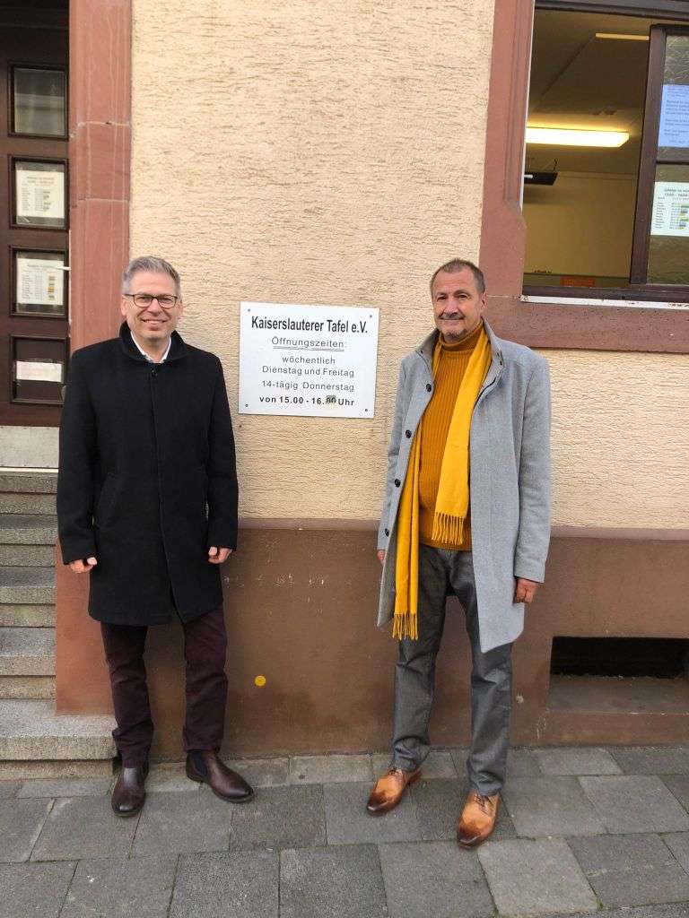 „Nur so werden wir unserem Verständnis von Demokratie in einem Sozialstaat gerecht!“, so der Oberbürgermeisterkandidat Thomas Kürwitz im Austausch mit dem Leiter der Tafel Stefan Opitz.