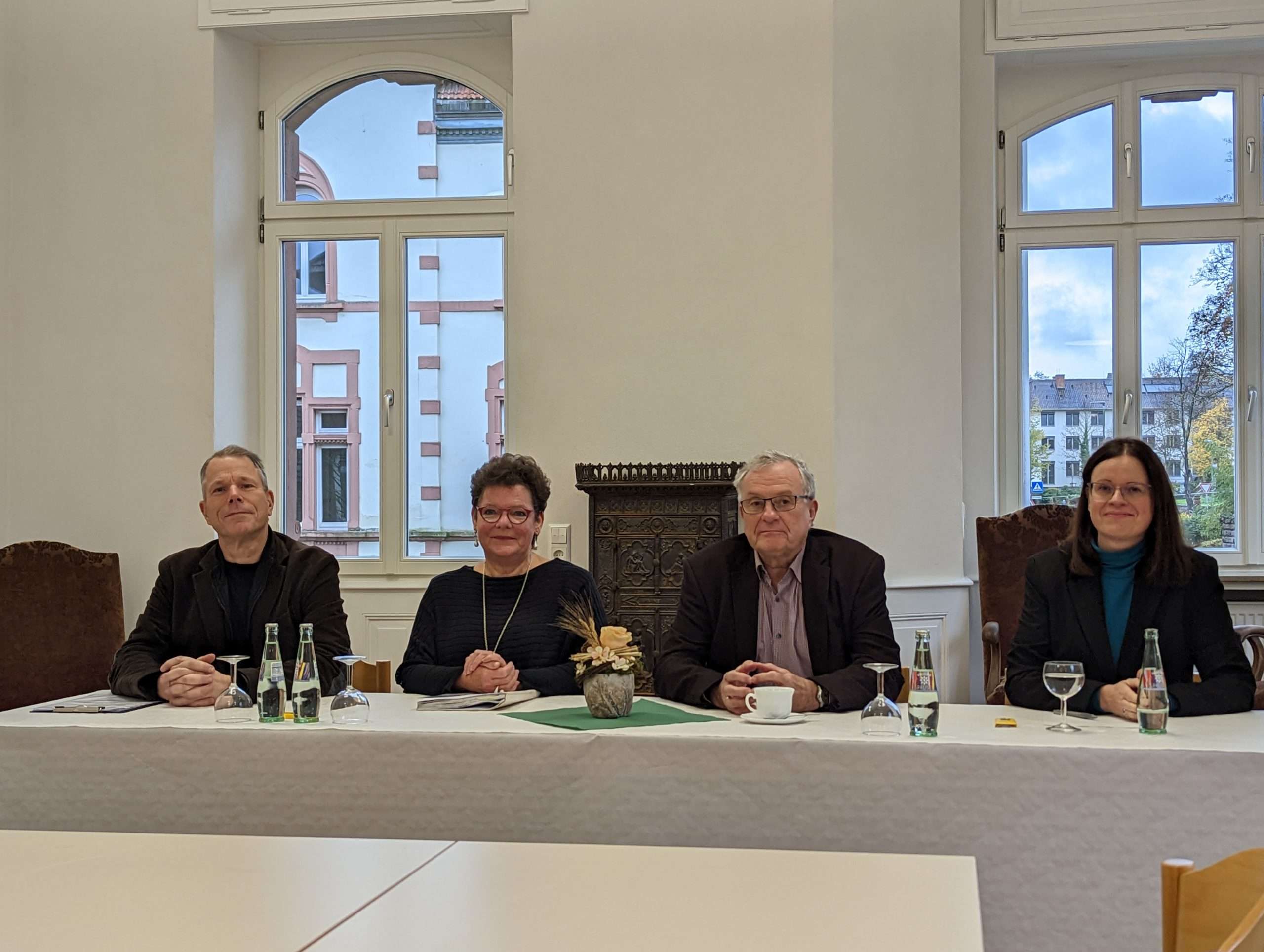 Feierstunde zur Wiedereröffnung (von rechts): Bezirkstagsvorsitzender Theo Wieder, Institutsdirektorin Dr. Sabine Klapp, Mark de Fries von der Bauverwaltung des Bezirksverbands Pfalz und Dietlinde Sand vom Architekturbüro Sand